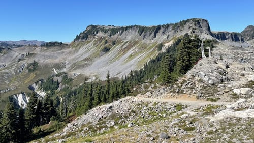 The trailhead to artist point is at the last parking area on the mt. Table Mountain 3 miles round trip with 560 feet of elevation gain 5700. Baker Highway there is a spot that boasts 360-degree views of breathtaking mountain scenery.