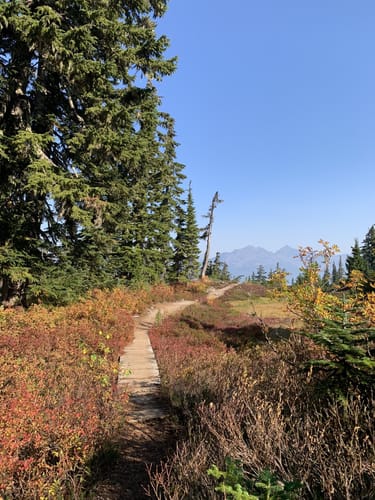Generally considered a moderately challenging route it takes an average of 51 h 21 min to complete. Upon arrival at Heather Meadows continue to drive around Picture Lake one-way and past the ski lifts.